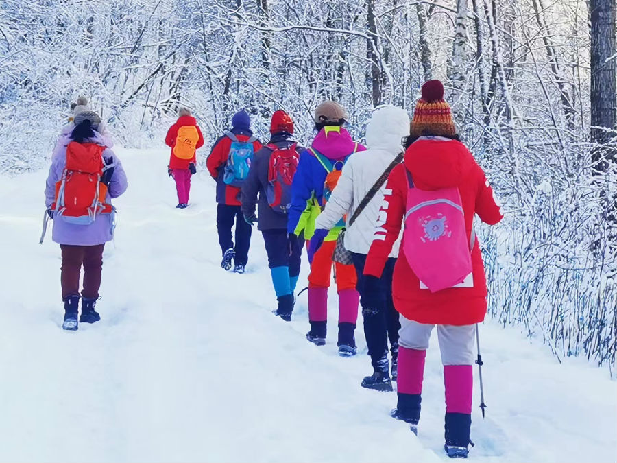 在雪后的清晨,陽(yáng)光透過(guò)云層灑在雪地上,映照出一片金黃。滿(mǎn)樹(shù)潔白的霧凇一叢叢、一簇簇地綻放在龍灣湖邊,如瓊似玉,讓人目不暇接。個(gè)別秋殘的紅葉被包裹在霧凇之中,嬌俏迷人,給人們帶來(lái)了一種別樣的視覺(jué)沖擊。整個(gè)景區(qū)被潔白的雪地和晶瑩的霧凇覆蓋,呈現(xiàn)出一片純凈、靈動(dòng)的美。這種美是無(wú)聲的,它靜靜地訴說(shuō)著一個(gè)銀色的世界。