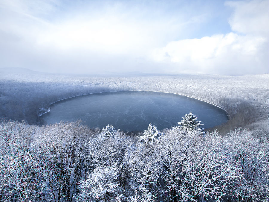 正在開(kāi)發(fā)建設(shè)中的龍灣瑪珥湖景區(qū)位于吉林森工三岔子林業(yè)有限公司龍灣林場(chǎng)境內(nèi),主要景觀龍灣湖湖面海拔800米,是第四紀(jì)晚期火山運(yùn)動(dòng)形成的典型瑪珥湖,湖面近似圓形,水域最深處約53米,湖面面積約42公頃,湖內(nèi)水量常年基本不變。隨著冬日的到來(lái),北風(fēng)吹拂著雪花在湖面四周盡情飄灑,宛如一幅絕美的山水畫(huà)卷。