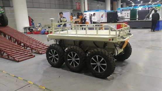 6×6純電動全地形車采用功率型鋰電池,外轉(zhuǎn)子電機直驅(qū),搭載無人通信平臺,電子差速轉(zhuǎn)向。